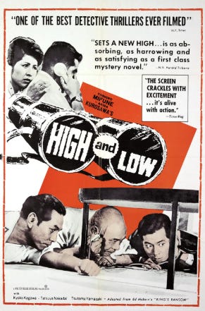 That’s the backdrop of High and Low. Gondo’s home at the top of the hill represents desire, privilege, and aspiration. The Yokohama streets below, filmed in noirish shadows, represent the violence and anxiety of those left behind. Kurosawa makes us feel that split-vision Japan was living: America as both dream and domination.